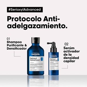 Shampoo anticaida Serioxyl Loreal Professionnel, aporta engrosamiento y densidad al pelo. evitando la caída.
