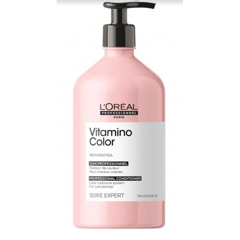 El acondicionador Vitamino Color aporta tonos vibrantes, un brillo infinito y suaviza el cabello, su fórmula profesional elaborado con resveratrol, protege el cabello de la pérdida del color hasta por 8 semanas y a la fibra contra los daños. El cabello es más resistente, hidratado, más fácil de desenredar y más flexible.